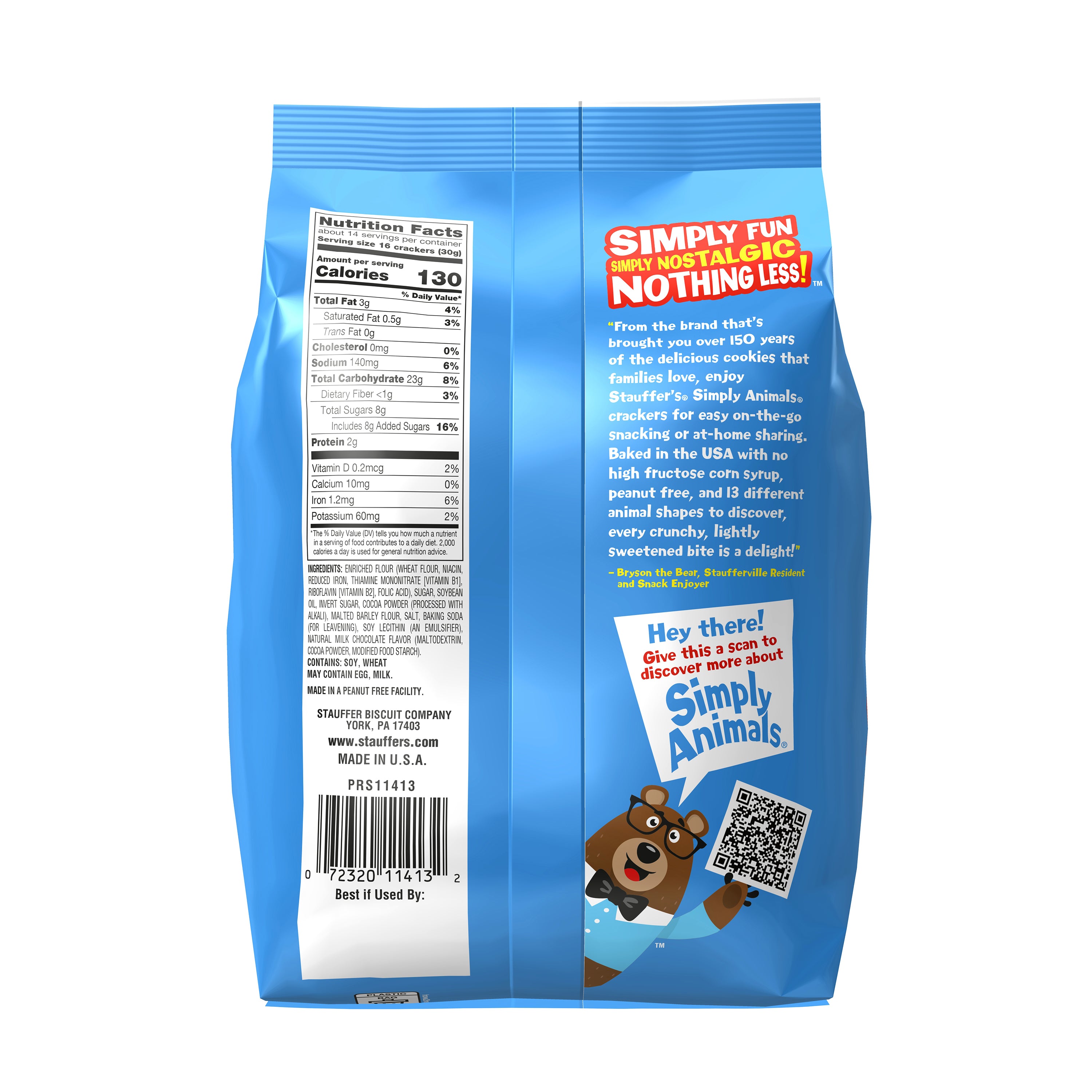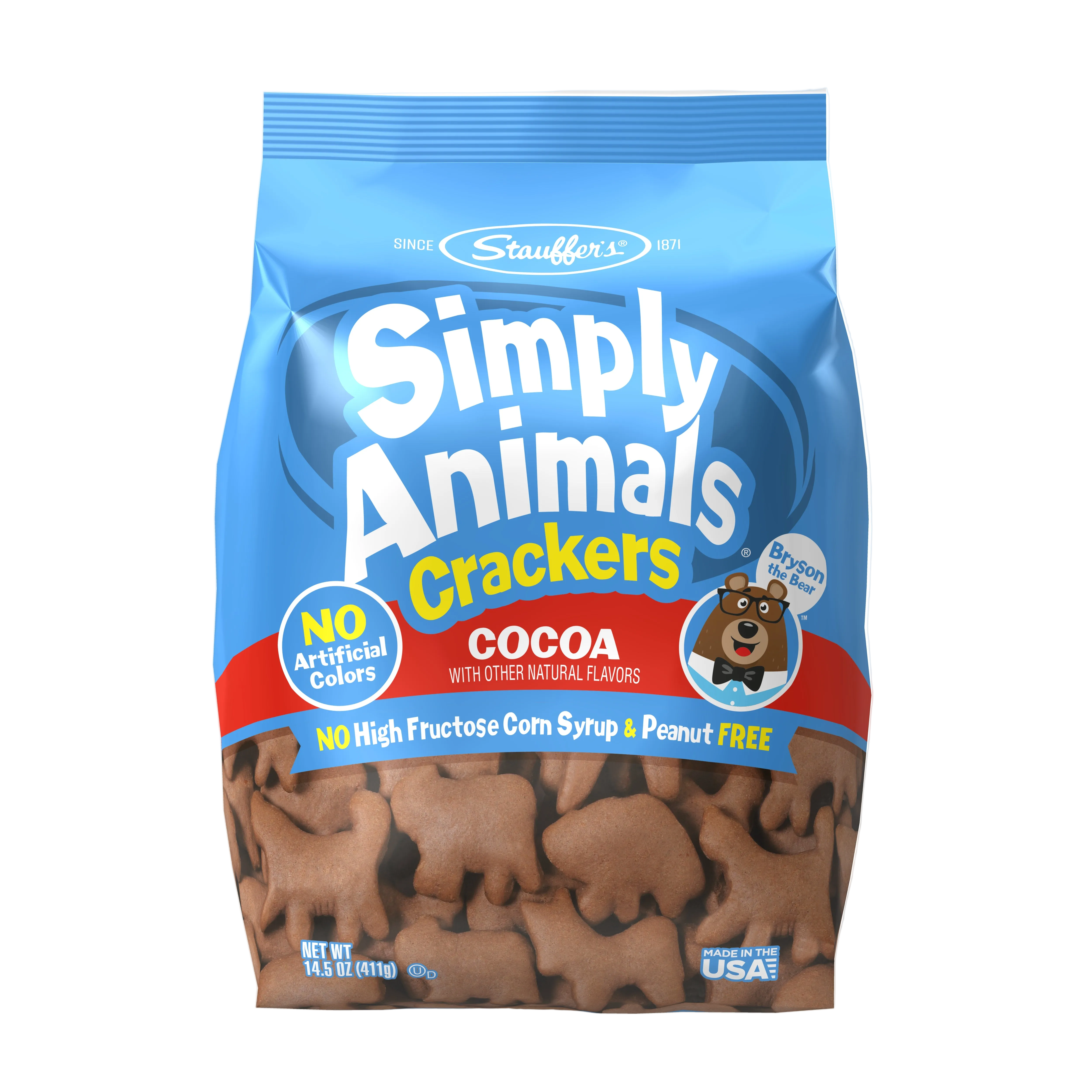 Make snack time a little more chocolatey with Stauffer’s Simply Animals Cocoa animal crackers in a 14.5oz bag. Great for sharing at home or packing for school, these crunchy cocoa crackers come in 13 whimsical shapes and are baked in the USA with no high fructose corn syrup or artificial colors. A classic treat with a chocolate twist!